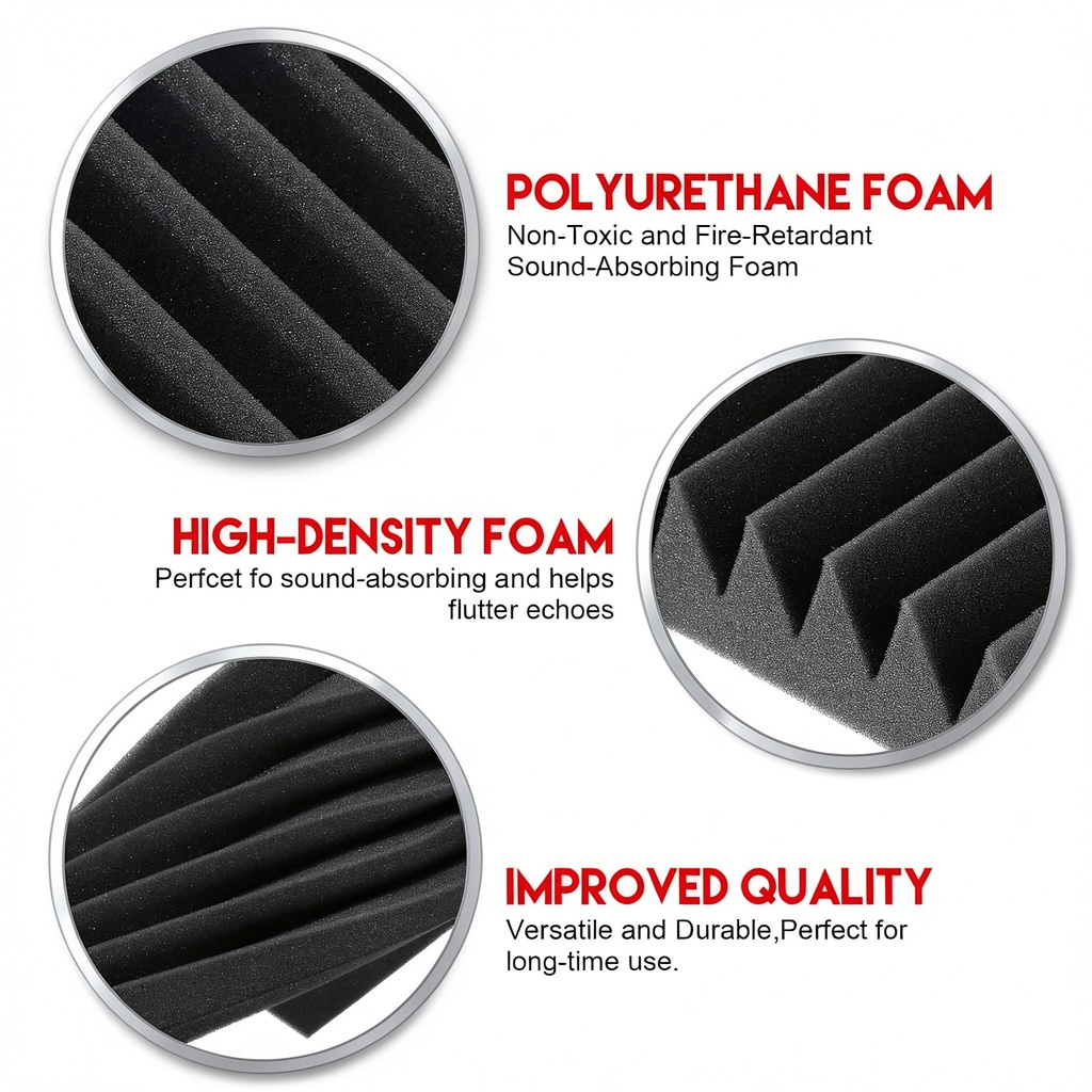 Our acoustic foam panels are engineered to deliver superior sound clarity by eliminating harmful noise and reducing echoes, waves, and reverberation. Crafted from thick, fire-retardant, and eco-friendly acoustic foam, each panel measures 12x12x2 inches, ensuring effective sound absorption in small to medium-sized spaces. The package includes 12 black pyramid-design panels and 60 pieces of 3M adhesive tapes for secure installation. These panels are vacuum-packed for efficient shipping and can be restored to full size using simple recovery methods, making them a practical solution for enhancing audio environments.