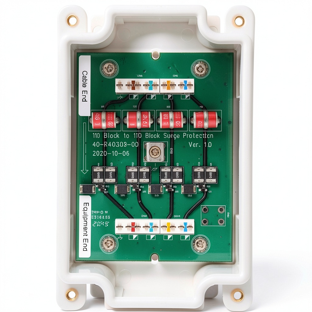 - Gas discharge modules on all four twisted pairs for comprehensive line-to-line and line-to-ground protection